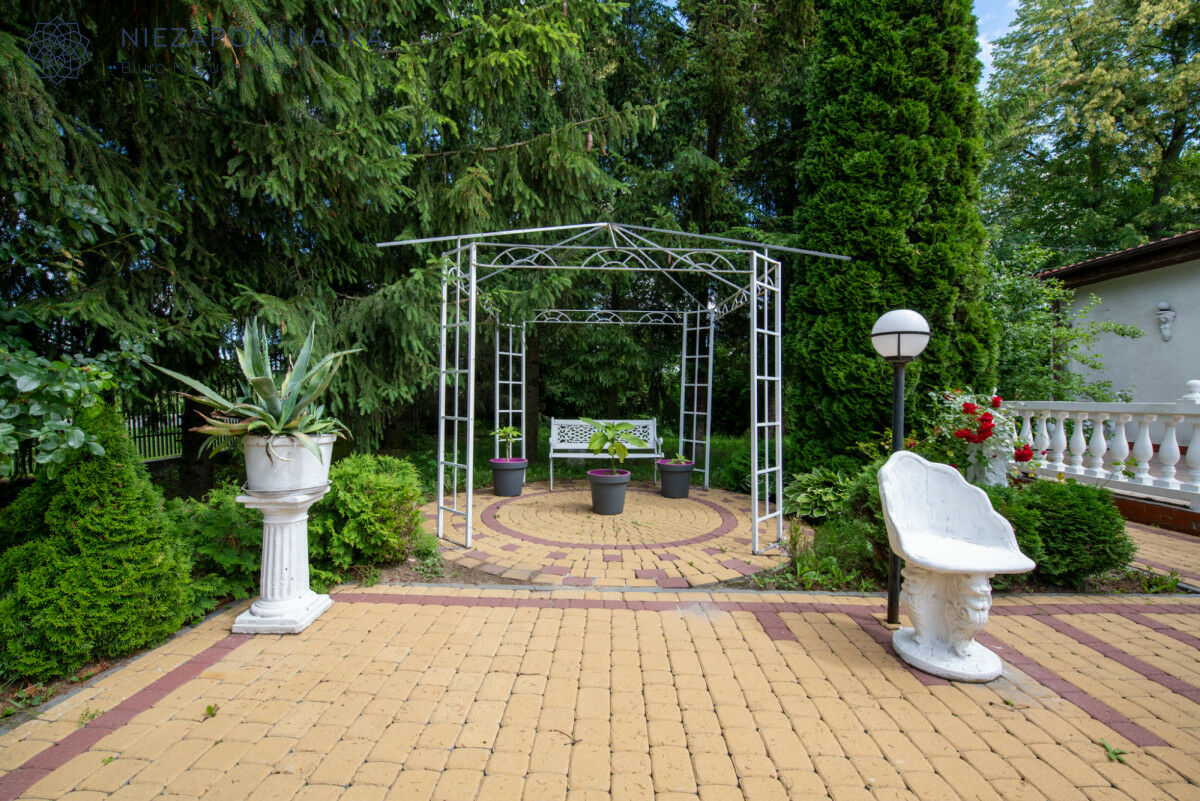 Działka jest ogrodzona, z bramą wjazdową i wybrukowanym podjazdem.